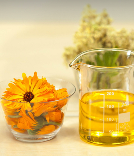 Le spiccate proprietà lenitive sono da attribuire alla componente non saponificabile composta da flavonoidi e mucillagini. I principi attivi contenuti nell’estratto di calendula, in particolare i flavonoidi, esercitano un effetto antiflogistico sulla cute fragile e infiammata, stimolano la riepitelizzazione, accelerano il turn over epidermico e favoriscono la sintesi del collagene.