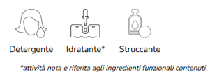 Può essere utilizzato anche come detergente per uso quotidiano poiché a contatto con l’acqua si trasforma in un’emulsione che lo rende adatto tutti i tipi di pelle. Grazie alla sua formula arricchita con Olio di Crusca di Riso e di Mandorle Dolci, aiuta a donare una piacevole sensazione di freschezza, rendendo la pelle morbida e vellutata.